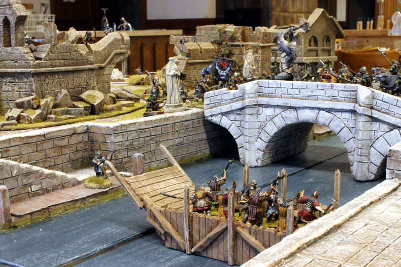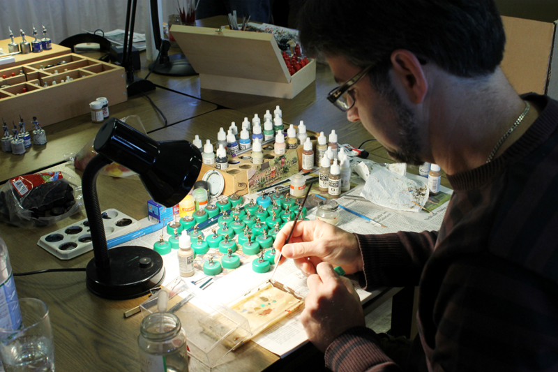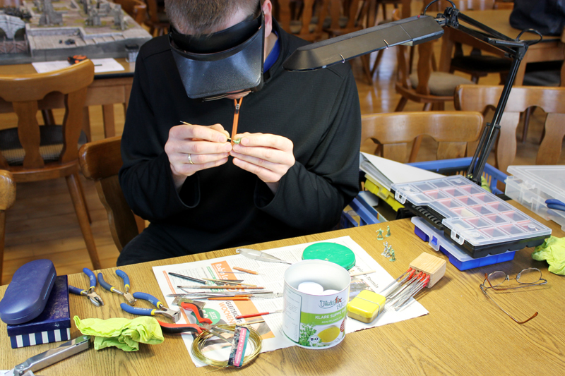 Das nunmehr 14. Symposium des Modellfiguren Forums ist am letzten Wochenende abgehalten worden. Wieder einmal gab es einiges zu sehen und zu hören. Hans-Karl brillierte erneut mit einem sehr unterhaltsamen und interessanten Vortrag. Es ging um die Recherche und Rekonstruktion eines Offiziers-Rockes der Französischen Armee zu Zeiten der Napoleonischen Kriege. Es war höchst spannend zu erfahren, welche Rolle Material, Schnitt und Arbeitsweise bei einem solchen Kleidungsstück spielten. Ganz abgesehen von den Mühen und der Zeit, die eine solch aufwendige Rekonstruktion mit sich bringen. Natürlich wurde wieder fleißig gemalt und modelliert. Die Ausstellung der Figuren und Dioramen war auch in diesem Jahr von sehr hoher Qualität. Eine große Rolle spielte, wie auch schon in den letzten Jahren, das Thema Wargamnig. Unter dem Motto Field of Glory durch alle Epochen gab es Szenarien zum Thema Alexander der Große, Kreuzzüge sowie der Napoleonischen Kriege. Nur die geplante Schlacht im 30-jährigen Krieg musste aufgrund von Zeitmangel ausfallen. Am Samstag konnte ich außerdem eine Armee Mordors ins Feld führen, mit der ich vergeblich versuchte die Ruinen von Osgiliath zu erobern. Eine weitere Lektion zum Thema Airbrush, sowie unzählige Gespräche zu neuen Projekten rundeten das Wochenende für mich ab. Leider war die Anzahl der Teilnehmer in diesem Jahr durch viele Absagen deutlich niedriger. Außerdem musste der geplante Museumsbesuch ausfallen…ich hoffe, das im nächsten Jahr wieder alle am Start sind und versäumtes nachgeholt werden kann.