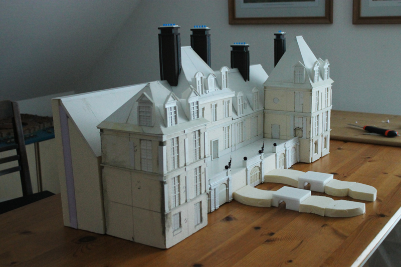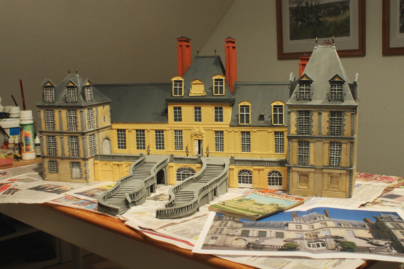Es geht langsam mit dem Fontainbleau Projekt voran! Zum Jahreswechsel gab es wieder einmal ein kleines Basteltreffen. Dirk und ich sind zunächst einmal den härtesten Brocken des Dioramas, der Treppe zum Schlosseingang angegangen. Wir haben die Treppe zunächst in 4 Sektionen unterteilt, diese Abschnitte dann getrennt gebaut und schließlich miteinander verklebt. Es fehlt jetzt allerdings noch das Geländer. Sieht aber schon ziemlich schick aus, oder? Da ich bis über beide Ohren noch in anderen Projekten stecke, wird es wohl schwierig, das ganze Diorama zum festgesetzten Zeitpunkt vollendet zu bekommen. Es wird aber mit Sicherheit im Laufe des Jahres fertig sein. Demnächst mehr…