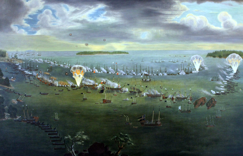 Die 5. Etage beherrbergt eine Ausstellung zur Schwedischen Marine. Hier ein Gemälde der zweiten Schlacht am Svensksund im Juli 1790.