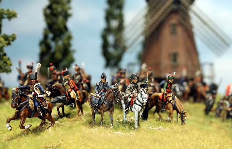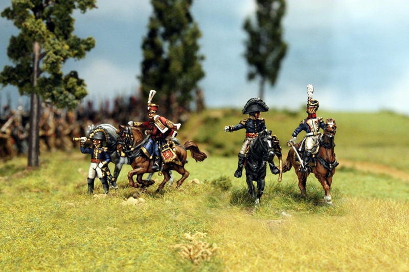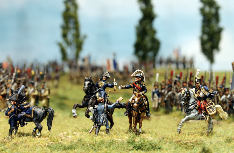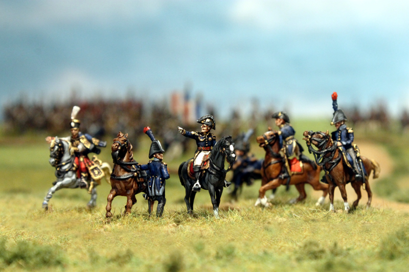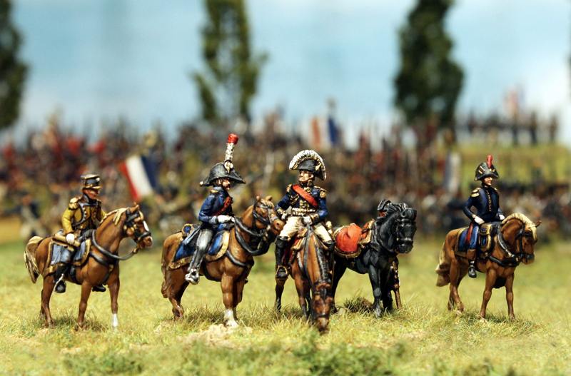 Die ersten Schlachten sind zwar schon geschlagen worden, aber natürlich ist das Projekt noch nicht abgeschlossen und zudem gibt es noch einiges an Figuren und Geschichten, die bisher nicht gezeigt und nicht erzählt wurden. Also allerhöchste Zeit, ein paar weitere Bilder online zu stellen. Den Anfang machen die französischen Kommandeure. Für das Regelwerk Field of Glory benötigt man für jede Division und jedes Korps einen Kommandeur. Dazu kommen natürlich noch der Armee-General und Adjutanten für alle diese Kommandeure. Bei den geplanten 2 Infanteriekorps mit insgesamt 7 Infanterie und 2 Kavallerie Divisionen, dem Schwerem Kavallerie Korps mit 2 Divisionen sowie dem Garde Korps mit insgesamt 3 Infanterie Divisionen und 1 Kavallerie Division macht das also 20 Kommandeure (ca. 50 Figuren) und rund 30 Adjutanten. 80 verschiedene Reiter, mit teilweise individuellen Uniformen und in dieser Vielfalt zu bemalen ist natürlich keine Kleinigkeit. Es fehlen auch immer noch einige Figuren, aber ein Großteil steht schon bereit. Aber steht selbst…