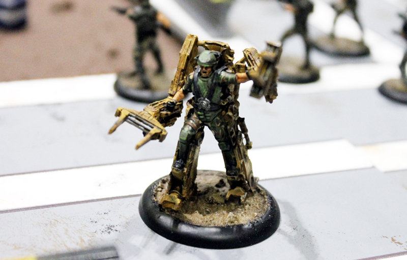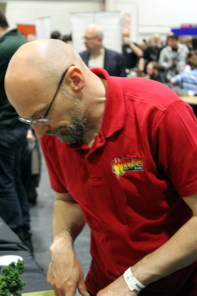 Alessio Cavatore von River Horse war mit einem brandneuen Figurenspiel vor Ort…Terminator. Die Plastik-Figuren zu diesem Spiel sind insoweit eine Innovation, als dass sie sich ohne Klebstoff in wenigen Sekunden zusammenstecken lassen. Das Spiel selbst verbindet Tabletop und Brettspiel miteinander und das Grundset beinhaltet alles, was man für ein paar erste Spielrunden benötigt. Hier der Link zum Spiel: http://riverhorse.eu/terminator/