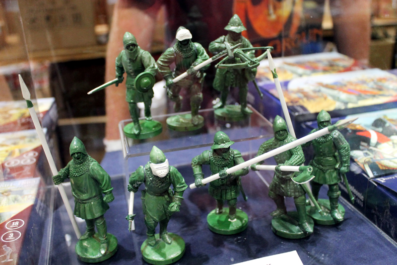 Wir konnten schon am Freitag mit Alan und Michael Perry über das großartige Gallipoli Diorama sprechen, welches die beiden 3 Wochen lang in Wellington Neuseeland in Zusammenarbeit mit Weta Workshop und im Auftrag von Peter Jackson aufgebaut hatten. Wie sich herausstellte, waren die beiden aber schon wieder fleißig. Alan konnte schon die 3-UPs Master des neuen Plastikfigurensets seiner Agincourt to Orelans 1415-29 Range zeigen. Es handelt sich um ein Set mit französischen Fußtruppen, wobei nicht nur Ritter, sondern auch Fußsoldaten und Armbrustschützen enthalten sind. Michael hatte innerhalb der letzten Wochen an einem nicht ganz überraschenden Set britischer Kolonialer Soldaten gearbeitet. Wie sich aber jetzt herausstellt, wird es sich um zwei seperate Sets handeln. Das erste Set beinhaltet britische Truppen in Uniform und Ausrüstung für die Sudan Kampagne (1883 bis 1885) sowie den Zweiten Anglo-Afghanische Krieg (1878 bis 1880). Das zweite Set deckt dann die Kampagnen unmittelbar davor ab, also den Zulu Krieg (1879), den Ersten Burenkrieg (1880 bis 1881) und den Urabi-Austand in Ägypten (1882). Natürlich wird es dazu auch jeweils eine Zinnfigurenrange geben (es wurde etwas von schweren Geschützen und Elefanten gemunkelt). Als großer Fan der britischen Kolonialzeit war das natürlich eines meiner Highlights…https://www.facebook.com/perryminiatures
