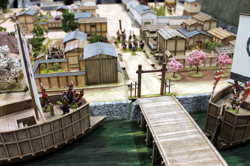 James von Oshiro hat eigentlich jedes Jahr den schönsten Spieltisch vor Ort…vor zwei Jahren war es seine „Victorian SF Mars“-Vision und in diesem Jahr seinen Klassiker, eine japanische Stadt der Sengoku Zeit. Exterm beeindruckend…