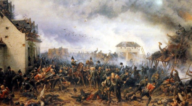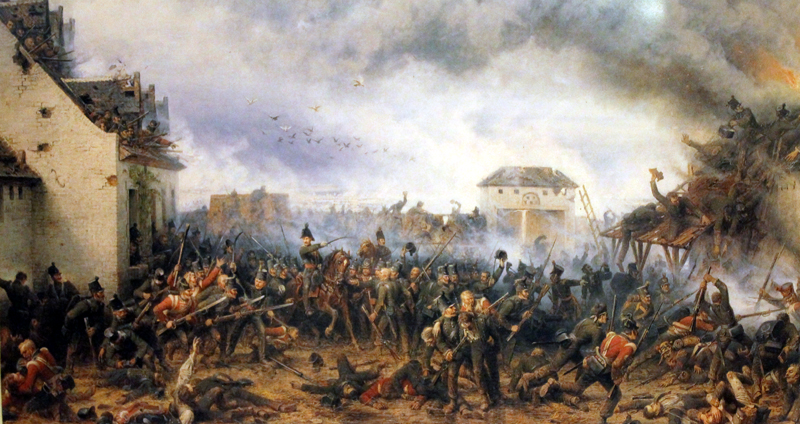 Hier das berühmte Gemälde von Northen, welches den Kampf des 2. leichten Bataillons der KGL um den Meierhof La Haye Sainte zeigt: