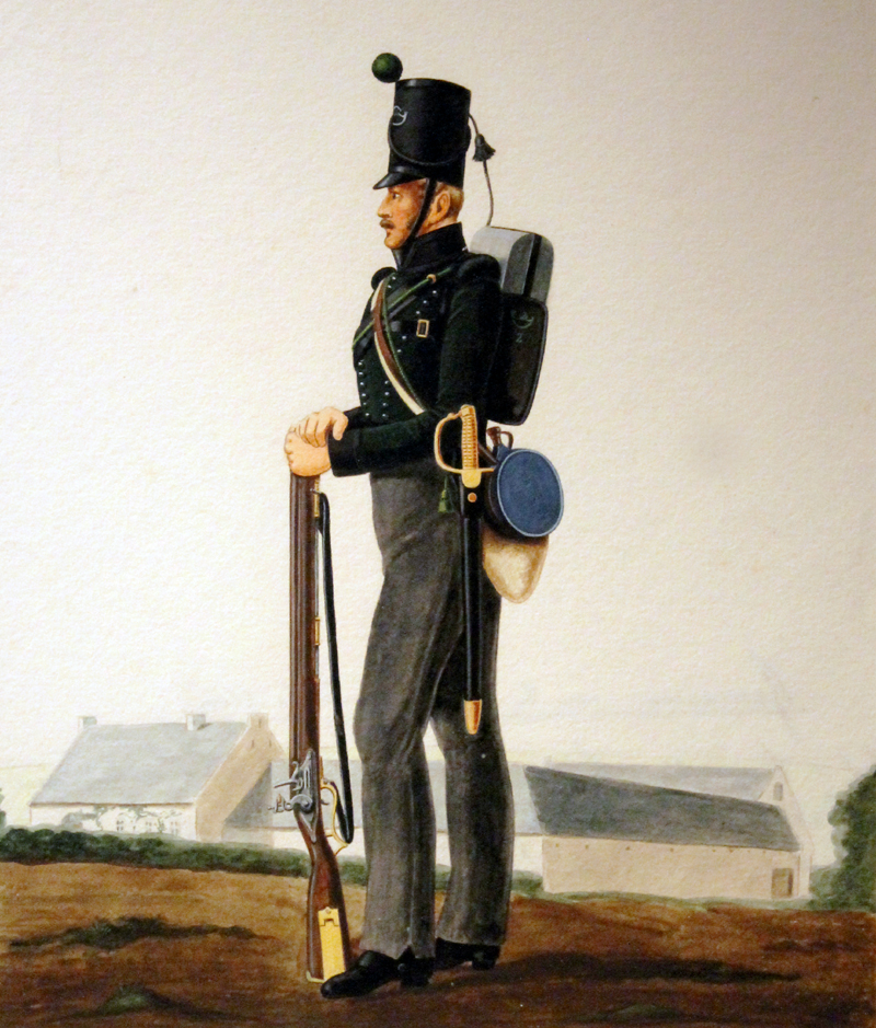Eines der vielen Aquarellen aus der Uniformserie von Winand Aerts. Es zeigt einen Soldaten es 2. leichten Bataillons der KGL: