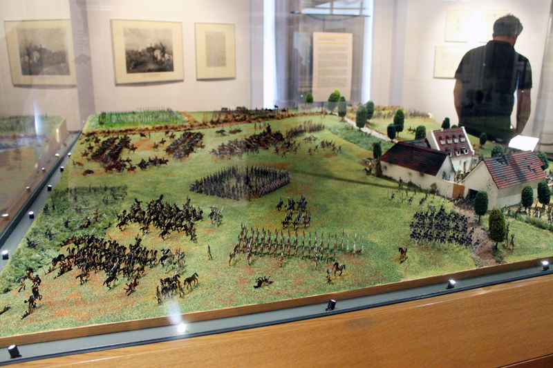 Im kleinen Vorraum zur Ausstellung findet sich ein kleines Flachfigurendiorama. Es zeigt die Parade der Hannoverschen Armee im Jahr 1832 zur Einweihung der Waterloosäule:
