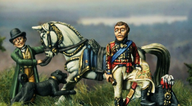 Passend zum Thema Waterloo und hannoversches Militär im Rahmen der Celle-Ausstellung, hat Jens Najewitz, eine 28mm Sonderfigur produzieren lassen. Diese großartige Figurengruppe, modelliert von Frank Germershaus, zeigt den hannoverschen General Carl von Alten nebst seinem Pferd, Hund und Diener. Vorlage für die Miniaturen war natürlich das in der Ausstellung hängende Gemälde, welches vor kurzem vom Museum erworben wurde und nun erstmalig der Öffentlichkeit gezeigt wird.