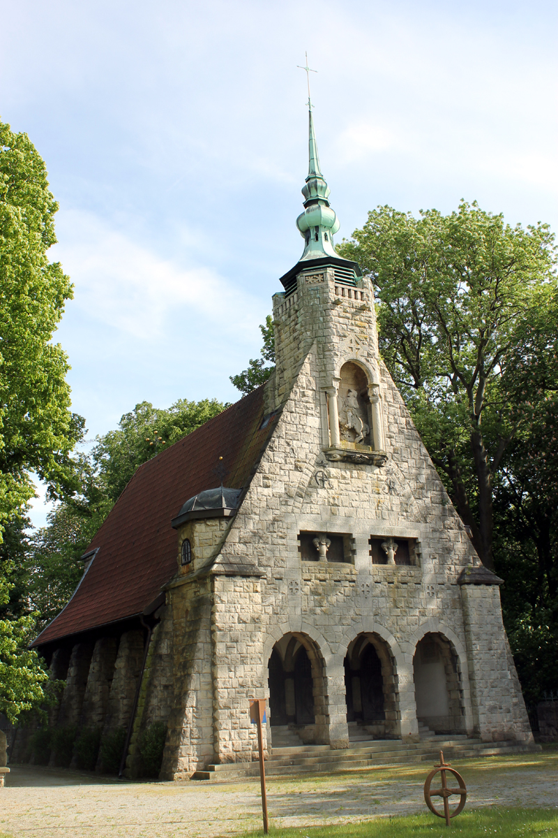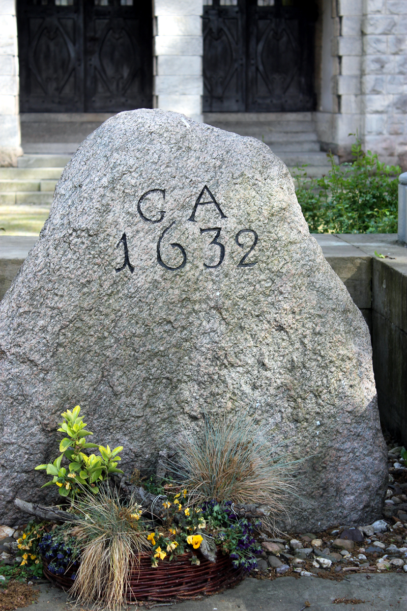 Im Nordosten führt die Bundesstraße 87 schnurgerade aus der Stadt hinaus in Richtung Leipzig. Es ist mehr oder weniger die gleiche Wegführung, wie schon zur Zeit des 30-jährigen Kriegs. Am Ortsausgang, an der Stelle, an der sich jetzt ein Supermarkt befindet, lag früher ein 1 bis 1,5 Meter hoher Erdhügel, auf welchem drei hölzerne Bock-Windmühlen standen. Vor den Mühlen war während der Schlacht von 1632 die große Batterie der kaiserlichen Truppen aufgestellt worden. Ein paar hundert Meter weiter stößt man rechter Hand auf das Ehrenmal des schwedischen Königs Gustav-Adolf und die Gedächtniskirche. An dieser Stelle wurde der berühmte Heerführer in der Schlacht getötet. Zunächst markierte die Todesstelle nur ein großer Findling. Erst im Jahre 1837 wurde der Stein mit einem Baldachin, entworfen von Schinkel, gekrönt. Später, im Jahr 1906, kam dann die Gedächtniskappelle hinzu. Auf dem Gelände befinden sich außerdem zwei kleinen Holzhütten aus Dalarna. In einer der Hütten sind der Museumshop und die Kasse, in der zweiten ein kleiner Ausstellungsraum untergebracht. Teil der Ausstellung ist auch ein Film, der die Geschichte der Gedenkstätte erläutert. Die Kapelle kann nur im Rahmen einer Führung (man sollte ein Kombiticket mit dem Schlossmuseum erwerben) besichtigen. Viele Schweden besuchen die Kapelle. So auch, als ich vor Ort war.