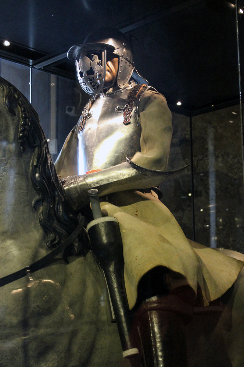 Ein kleinerer Teil der Sammlung befindet sich weiterhin im White Tower des Tower of London und um diese Ausstellung soll es hier gehen. Ursprünglich entstand die Sammlung in der Regierungszeit von Karl II. Damals hieß die Ausstellung noch Spanish Armoury und zeigte Waffen und Rüstungen, die nach dem Sieg über die spanische Armada erbeutet worden waren. Berühmt ist aber vor allem die sogenannte Line of Kings. In dieser Ausstellung standen lebensgroße Nachbildungen der britischen Könige in voller Rüstung zu Pferd nebeneinander. Seit dem 18. Jahrhundert befindet sich die Ausstellung, die ab diesem Zeitpunkt New Armouries genannt wurde im White Tower. Neben den königlichen Rüstungen, sind auch eine Vielzahl von Waffen, Rüstungen und Uniformen der britischen Armeen quer durch die Jahrhunderte zu sehen. Auch Rüstungen aus den Kolonien und Staatsgeschenke habe ihre eigene kleine Sammlung. Den Abschluss der Ausstellung, welche den Besucher auf und ab quer durch den White Tower führt, bildet eine Sammlung von besonders schönen Artilleriestücken. Die nachfolgenden Bilder zeigen nur einen kleinen Ausschnitt der Sammlung: