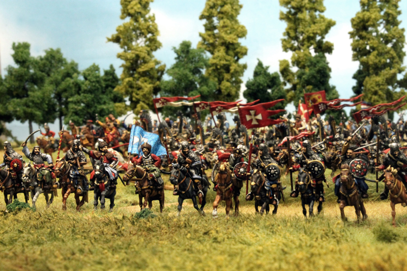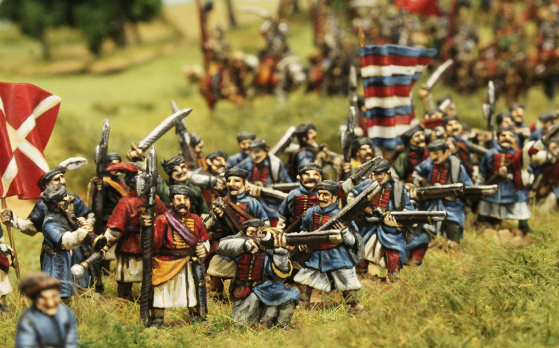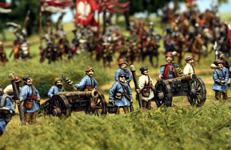 Nach einer kleinen Pause geht es jetzt weiter mit dem Aufbau meiner Polnisch-Litauischen Armee für Field of Glory Renaissance. Neben den Flügelhusaren und der Infanterie, sind jetzt auch Pancerni und Artillerie hinzugekommen. Die Pancerni sind Zinnfiguren-Restbestände eines Kleinserienherstellers, die mir Uwe Wild (noch einmal vielen Dank!) zur Verfügung gestellt hat. Die Artillerie stammt, wie schon die Infanterie, von der Firma Mars. Außerdem konnte ich eine weitere Einheit Flügelhusaren (Hersteller Zvezda) hinzufügen. Einige Kosaken (Hersteller: Orion) hatte ich schon für meine Armee der katholischen Liga bemalt, es fehlte bisher nur noch ein Kommandeur, welcher jetzt fertiggestellt wurde (Hersteller Zvezda).