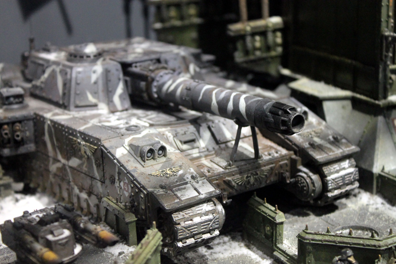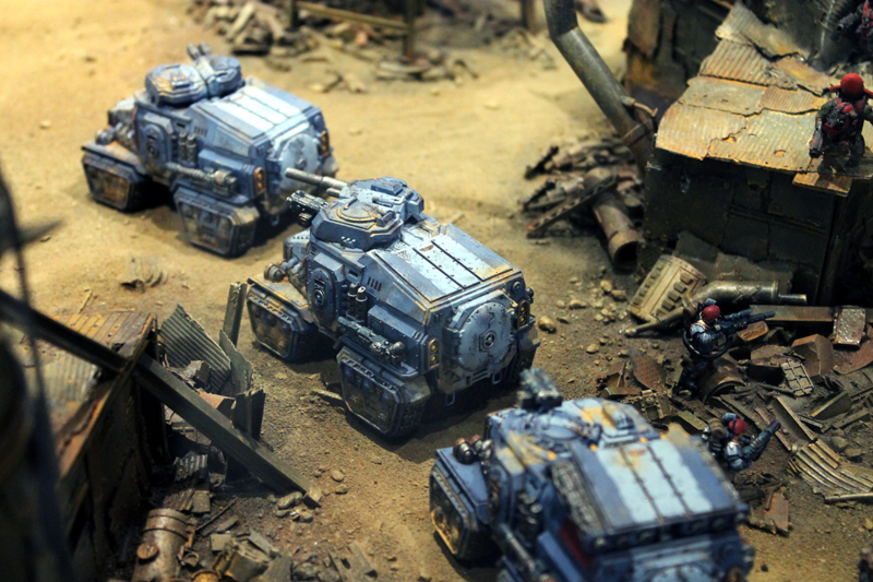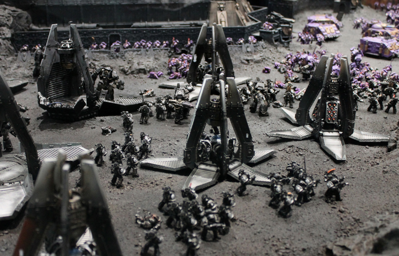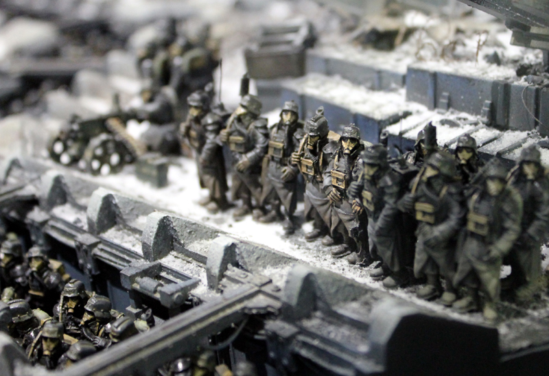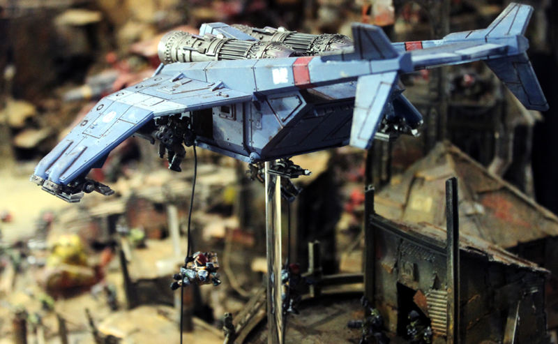 Typisch für Warhammer 40.000 sind die ganz offensichtlichen Anleihen an reale Armeen und Kriege unser Gegenwart und  Vergangenheit. Ein Beispiel ist dieses „Black Hawk Down“ Diorama: