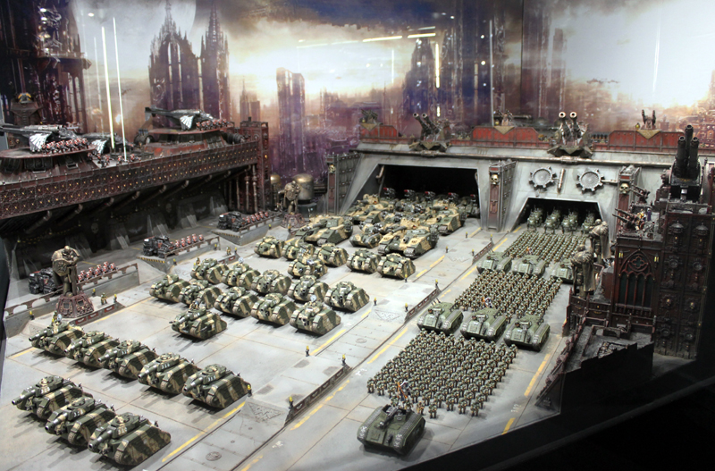 In einem der Ausstellungsräume wird die Geschichte des Hammers des Imperators, also der Imperialen Armee erzählt. Ziemlich eindrucksvoll diese Truppenparade auf der imperialen Welt Caida: