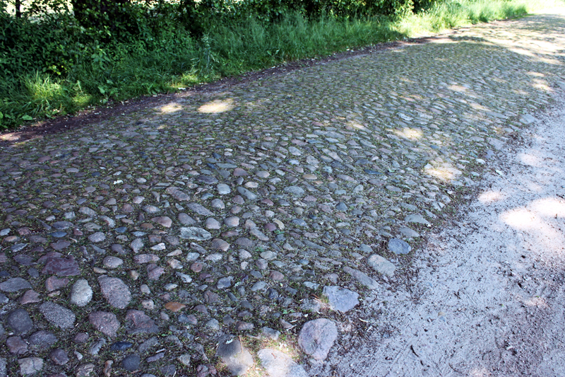 Noch heute findet man in ländlichen Gegenden Kopfsteinplasterstraßen mit den typischen paralell verlaufenden Sommerwegen