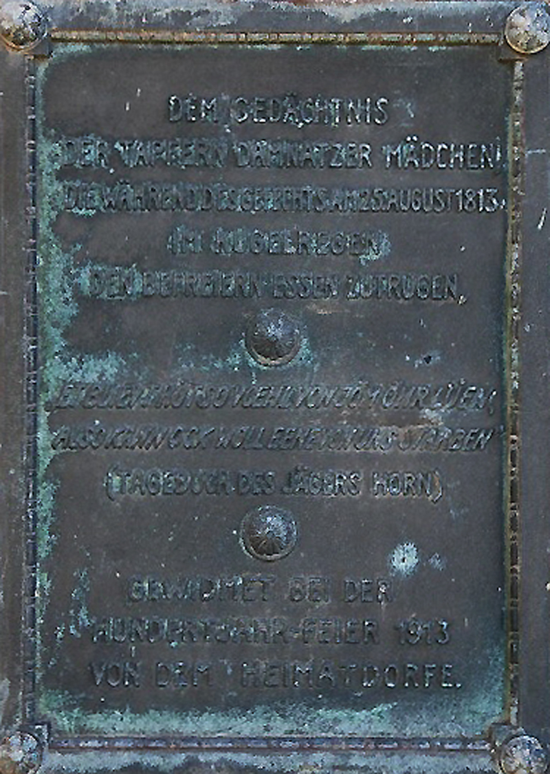 100 Jahre nach diesem Ereignis wurde im Rahmen einer Gedenkfeier eine Bronzetafel an der Kirche zu Ehren der Dannenberger Mädchen aufgehängt, die im Kugelhagel ihre Landsleute versorgten. Auch ein Gedenkstein für die an der Kirche begrabenen Franzosen wurde im Rahmen dieses Anlasses aufgestellt.