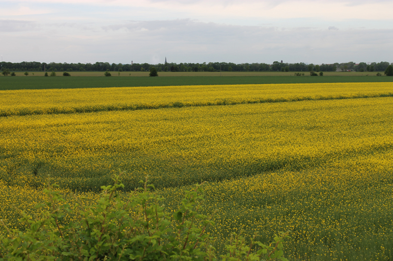 Blick man am Dorfrand von Kleingörschen nach Norden, kann man in der Ferne die Kirche von Lützen erblicken…