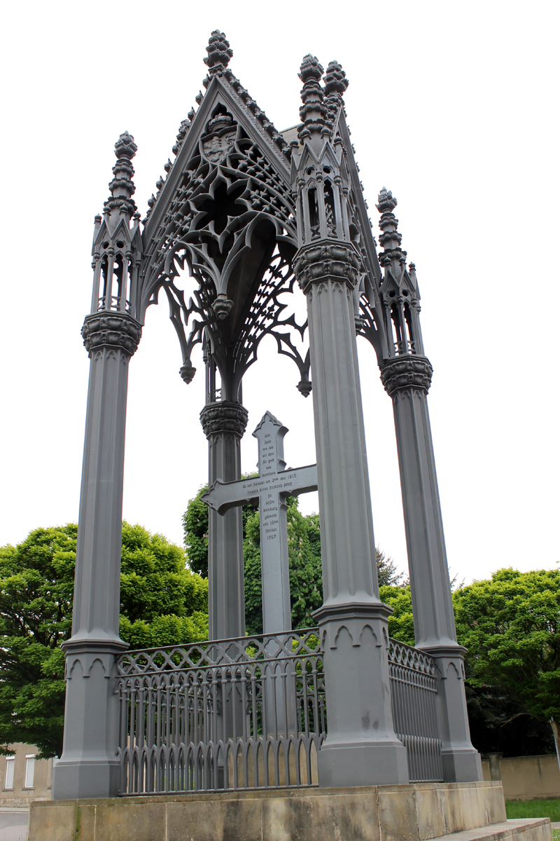 Das Denkmal des Prinzen Leopold von Hessen-Homburg wurde aus Initiative seiner Schwester Marianne errichtet. Es wurde ebenfalls von Schinkel entworfen. Der Prinz diente als Stabsoffizier im 1. Schlesischen Infanterieregiment und fiel in der Schlacht von Großgörschen. Das Denkmal musste 1974 wegen Baufälligkeit abgetragen werden. Die neue Kopie wurde am 2. Mai 1999 eingeweiht…