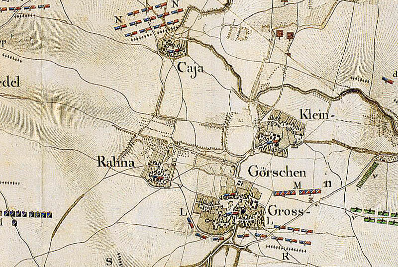 Im zweiten Teil meines Berichtes zur Schlacht von Großgörschen geht es um die Besichtigung vor Ort. Ein Rundgang durch die vier Dörfer Großgörschen, Kleingörschen, Kaja und Rahna gleicht einer kleinen Zeitreise. Wenn auch viele der alten Fachwerkgebäude in einem schlechten Zustand sind, so kann man sich doch auch heute noch ein Bild von den damaligen Verhältnissen machen.