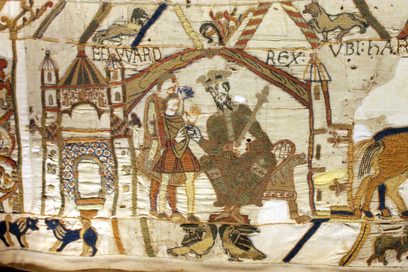 Dargestellt sind die Eroberung Englands durch den Normannenherzog Wilhelm den Eroberer, beginnend mit einem Zusammentreffen von Harald Godwinson, Earl of Wessex mit dem englischen König Edward. Das Ganze endet dann mit der Schlacht von Hastings am 14. Oktober 1066.