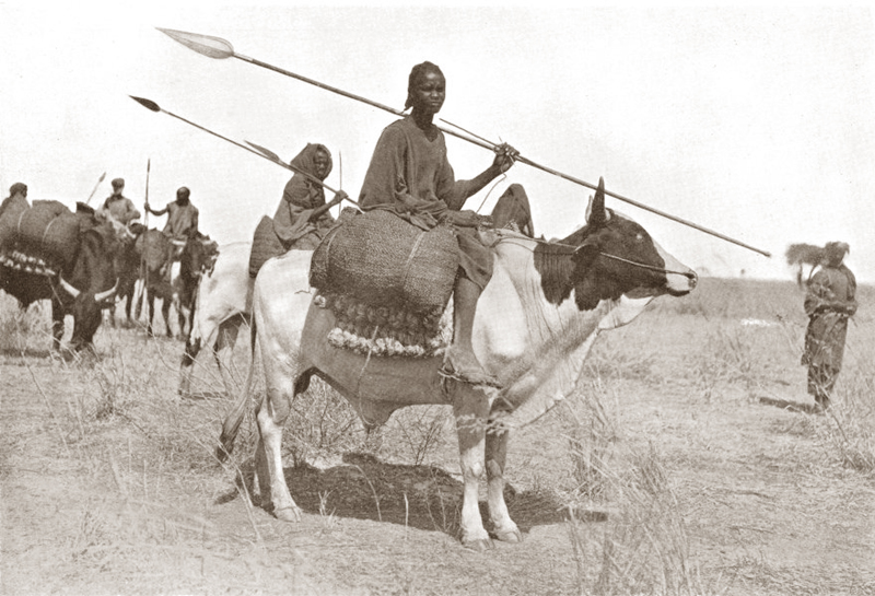 Die Hauptherden werden, angeführt von einem Leitochsen, von den azzaha (Junghirten) zu den unterschiedlichen Weidegründen getrieben. Begleiten die Nomaden ihre Rinderherden, so reiten sie auf ihren Bullen, wobei sie die Tiere mit einem Strick lenken, der an deren Nasenlöchern befestigt ist. Die Bullen werden ohne Sattel geritten, wobei die Reiter so geschickt sind, dass sie sich auch im vollen Trab auf dem Rücken halten können. Die Frauen und Kinder folgen langsam mit dem gesamten Hausrat auf Packochsen oder Kamelen. Die Weideplätze und die Routen ihrer Wanderungen verlaufen von Norden, wo sie die Regenzeit verbringen, nach Süden, wohin sie in der Trockenzeit ziehen. Dabei wandern sie auf einer kreisförmigen Route, benutzen also von Nord nach Süd und von Süd nach Nord jeweils verschiedene Wege, die meist aber nicht weit auseinanderliegen. Jeder Stamm hat dabei seine eigene Route, die nur von ihm benutzt wird.