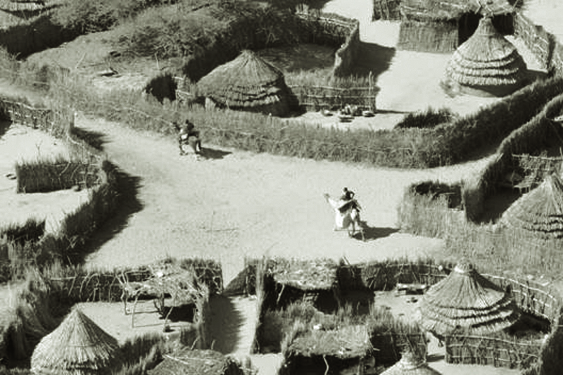 Ein Blick auf Abu Haraz mit seinen Rundhütten und einigen Rabukas.