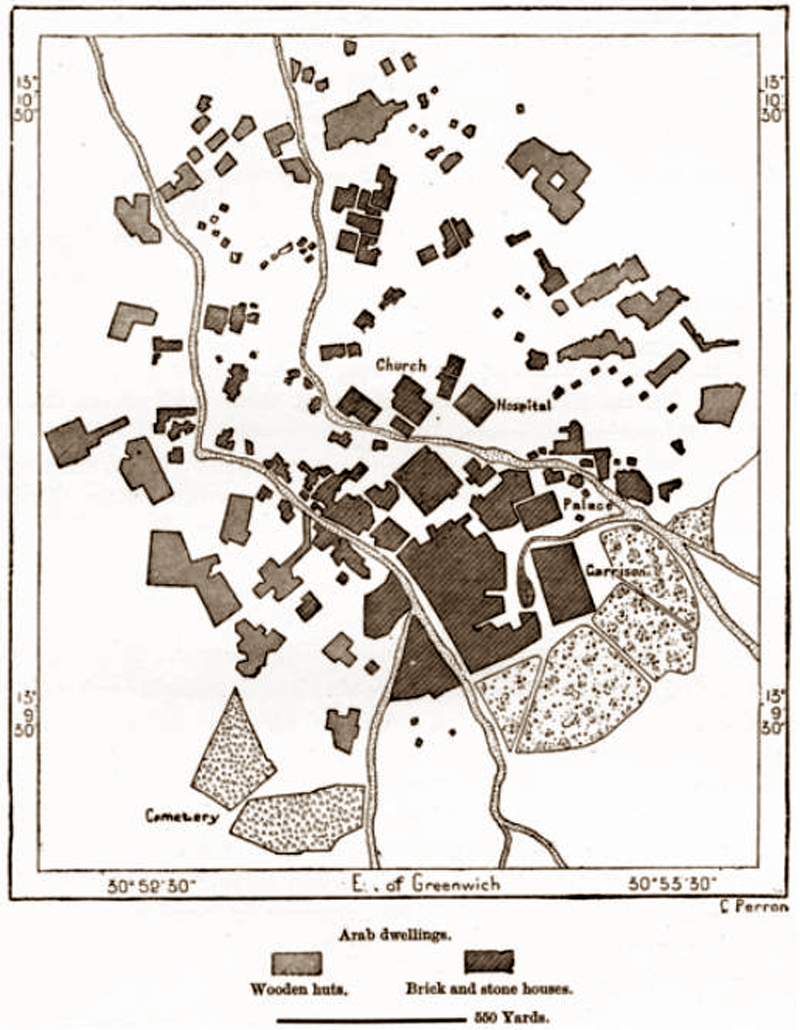 Diese Karte von El Obeid zeichnete der Kartograph Charles Perron in 1800er.