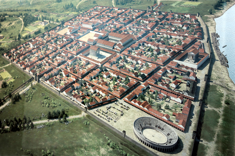 In der Regierungszeit des römischen Kaisers Nero waren hier 2 Legionen, also rund 10.000 Mann stationiert. Zu dieser Zeit entstand auch die erste römische Siedung am Ufer des Rheins, die das Militärlager versorgte. Nach dem Tode Neros gab es einen Aufstand der germanischen Bataver (69/70 n. Chr.), in dessen Folge die Siedlung und das Militärlager vollständig zerstört wurden.