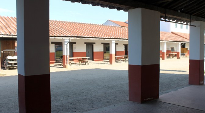Das Museumsgebäude der Anlage, das in der äußeren Gestalt den großen Thermen von CUT nachempfunden ist.