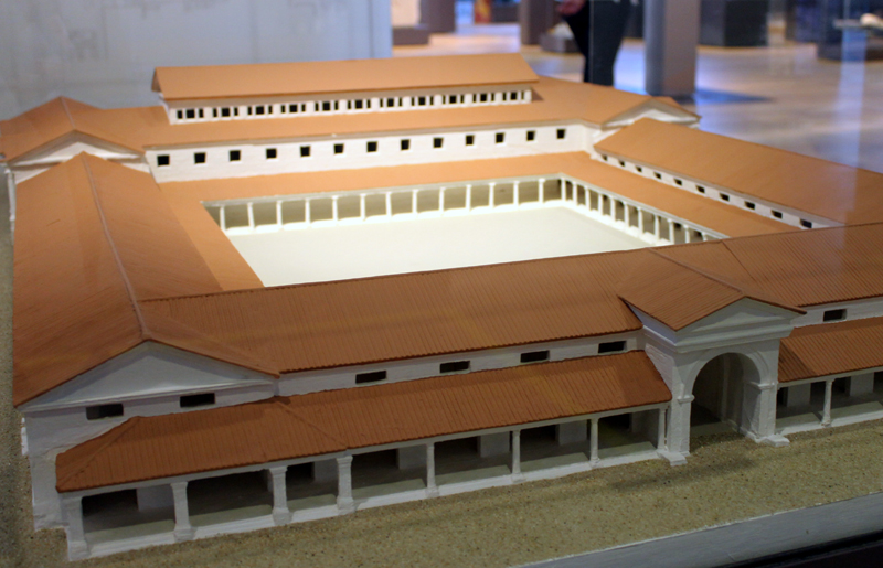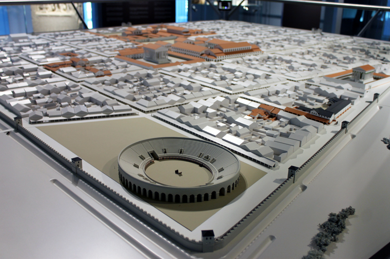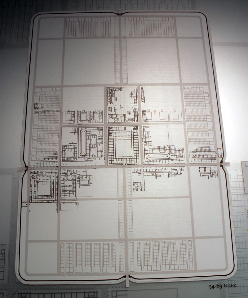 Im Museum führt ein Weg den Besucher vom Eingangsbereich bis unter das Dach des Hauptgebäudes. Man folgt dabei der Geschichte der Stadt und es Militärlagers von der ersten Besiedelung bis zum Untergang.