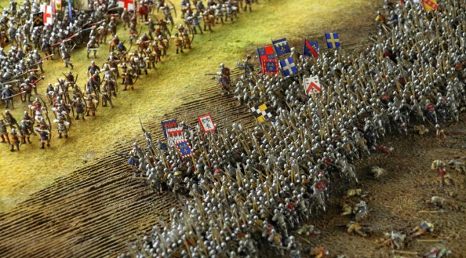 In London hatte ich die Gelegenheit im letzten Jahr verpasst, doch nun hat es in Leeds geklappt. Die Rede ist vom Besuch des großartigen Agincourt Diorama, das von den Perrys gestaltet und mit ihren Figuren bestückt wurde. Das Diorama ist Teil einer Sonderausstellung, welche im letzten Jahr zum 600. Jahrestag der Schlacht im Tower von London gezeigt wurde. Anschließend wurde das Diorama dann in die Royal Amouries in Leeds verleget und ist dort jetzt Teil der Dauerausstellung.