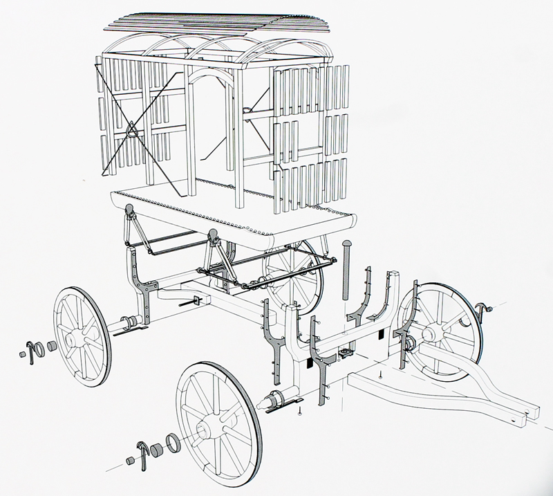 Die für die Rekonstruktionen der Wagen verwendeten Metallteile und Hölzer sind durch archäologische Funde nachgewiesen. Alle wurden vom Wagenbauer auf traditionelle Weise in Handarbeit hergestellt.