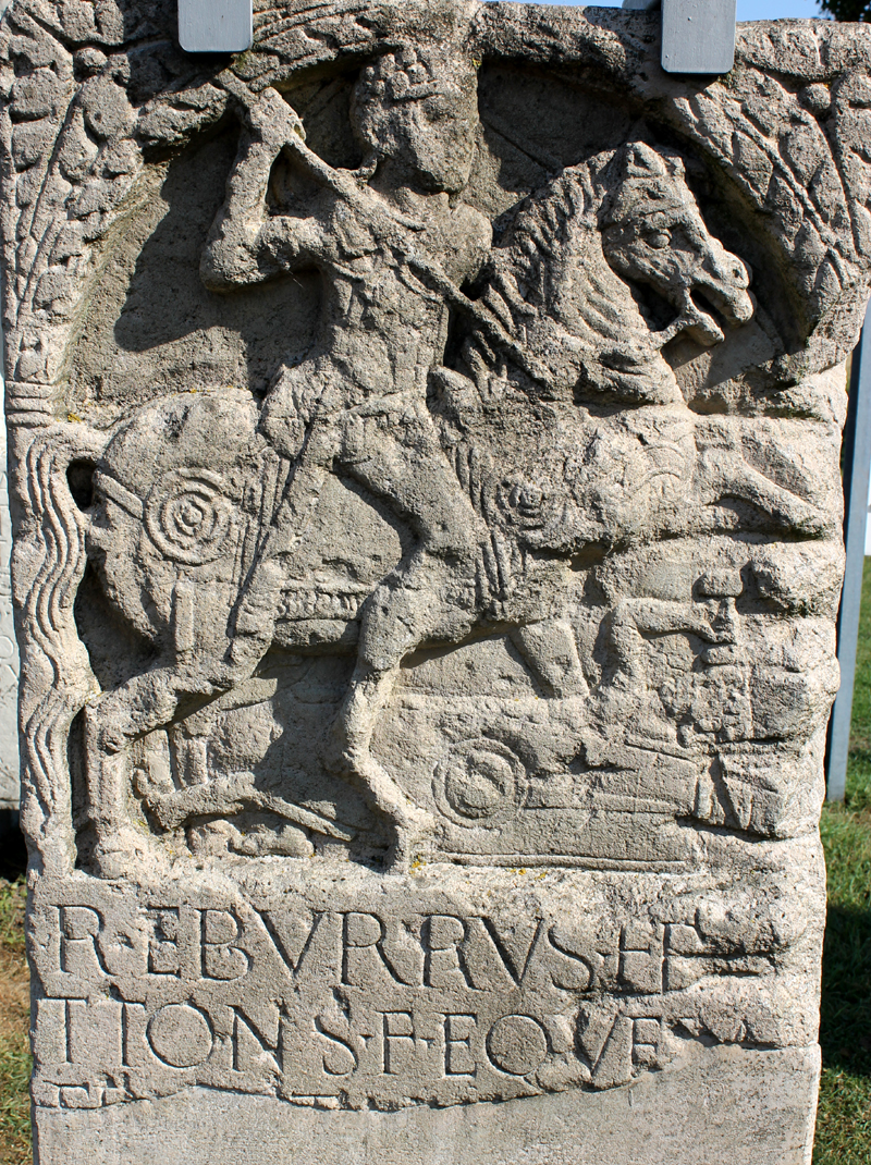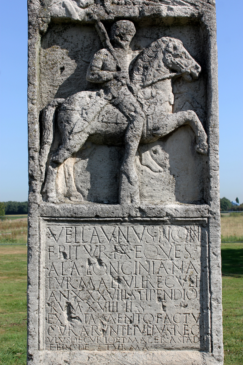Die Grabsteine römischer Legionäre sind für die Rekonstruktion die mit Abstand wertvollste Quelle. Hier sind nicht nur Ausrüstung und Kleidung bildlich dargestellt, man kann auch die Trageweise und Handhabung erkennen. Zusätzlich wird durch die Grabinschriften das Ganze in einen historischen Kontext gesetzt.