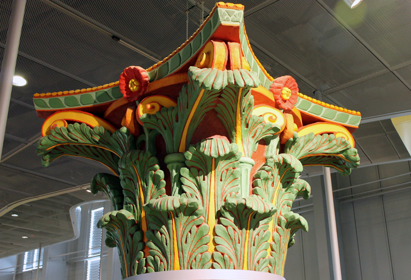 Wie im Park-Museum zu sehen ist, waren einst Teile des Tempels, wie die korinthischen Säulenkapitelle, bunt bemalt.