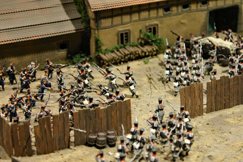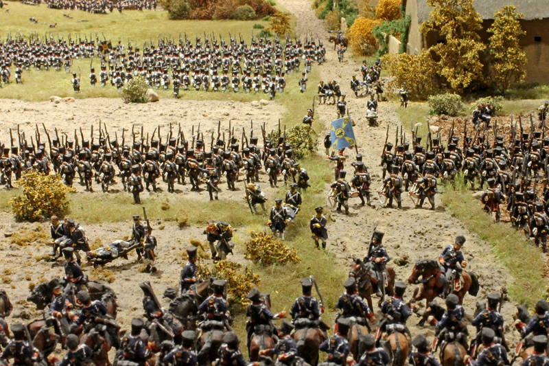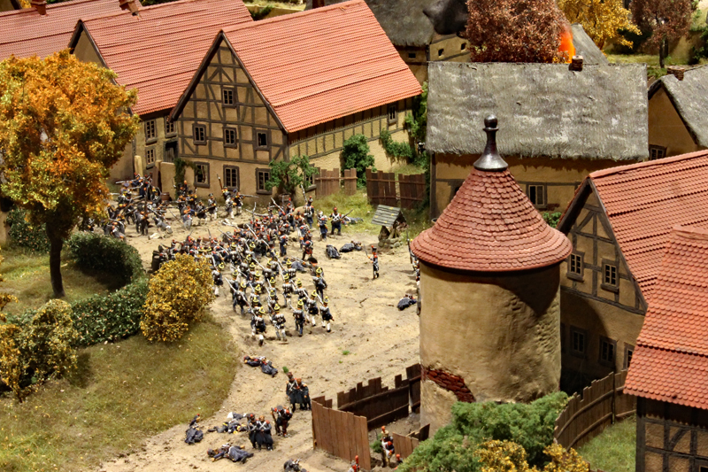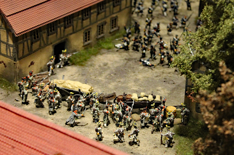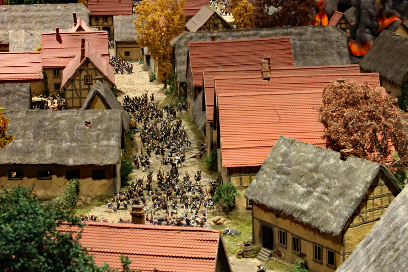 Nach einem langen, blutigen Kampf in den engen Gassen und Höfen waren die Truppen im Ort in völliger Unordnung. Die französische Artillerie schoss sogar in die Straßen des Ortes hinein und entfachte mehrere Brände.