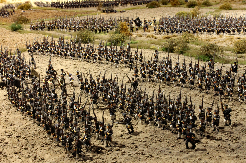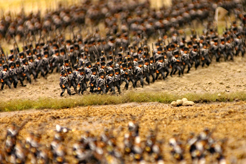 Die Preußen kämpften notgedrungen in Kolonnenformation, weil das Gelände keine weitere Auffächerung der Truppen zuließ. So konnten sie von allen Seiten von den Franzosen unter Feuer genommen werden.