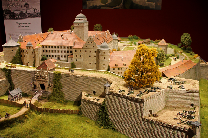 Anfang Oktober 1806 diente die Festung Rosenberg als Lager für das Heer des französischen Kaisers Napoleon Bonaparte, der von hier aus seinen Feldzug gegen Preußen begann. Auf seinen Befehl wurde die Festung instandgesetzt und neu armiert. Die Ausstattung der Festung mit den schweren Geschützen erfolgte vermutlich erst nach der Inspizierung durch Napoleon und seinen Stab, trotzdem sind beide Ereignisse im Diorama zu sehen. Wie in vielen Dioramen üblich, sind auch hier verschiedene Ereignisse in einem „Bild“ zusammengefasst, um dem Betrachter eine möglichst vollständige Geschichte zeigen zu können.