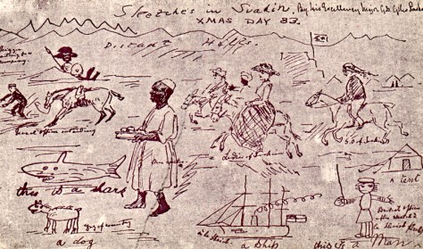 Im Rahmen Ihres Aufenthaltes im Sudan unternimmt Ernestine Sartorius Ausflüge auf einem Esel in die nähere Umgebung. Interessant die kleinen Zeichnungen, die sie dazu für ihr Tagebuch anfertigt.