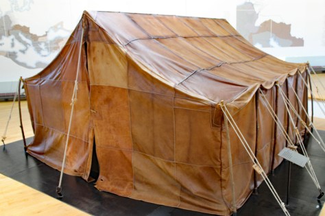 Diese Lederzelt aus 70 Ziegenhäuten wurde im Rahmen des legendären Marsches von Marcus Junkelmann und „seinen“ Legionären über die Alpen verwendet. Diese Aktion im Jahr 1985 war eine der ersten der sogenannten experimentelle Archäologie in Deutschland.