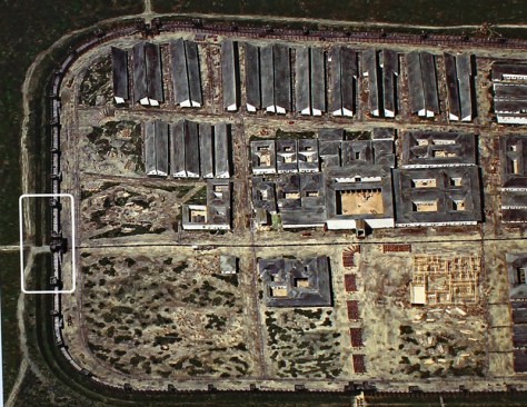 Das weiße Rechteck zeigt den rekonstruierten Teil des Lagers.