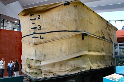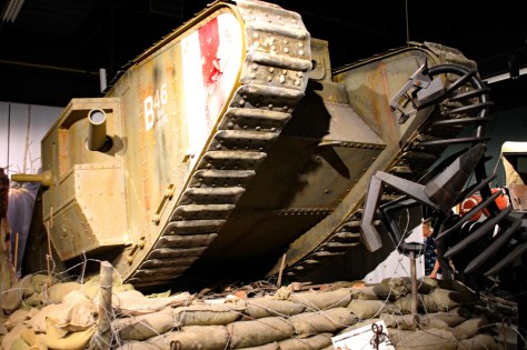 In dieser Halle, die dem ersten Weltkrieg gewidmet ist, werden die britischen Panzer dieser Zeit vorgestellt, aber vor allem auch die Geschichte der ersten Panzerbesatzungen erzählt. Beispielhaft sind in Bildern, Texten, Ausstellungsstücken und Filmdokumenten die Erfahrungen und Erlebnisse von 8 Männer in den Jahren zwischen 1916 bis 1918 festgehalten. Diese Ausstellung hat mich tatsächlich am meisten beeindruckt.