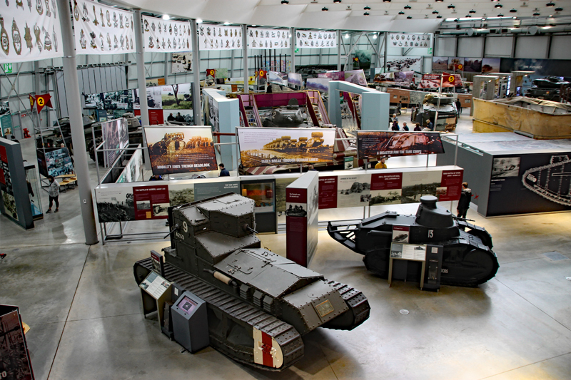 Das Tank Museum wurde nicht zufällig in Bovington angesiedelt. Schon während des Burenkrieges trainierte die Britische Armee hier ihre Soldaten. Im 1. Weltkrieg hatte man vor Ort zunächst rund 12.000 Infanteristen zu Ausbildungszwecken untergebracht. Ab Oktober 1916 wurde Bovington die Heimat des „Heavy Branch Machine Gun Corps“, der ersten britischen Einheit, welche die neu entwickelten „Tanks“ verwendete. Nach dem Krieg wurden die Panzer hier demontiert, da man glaubte, diese nicht wieder verwenden zu können. Sie waren ja speziell für den Einsatz im Grabenkrieg von Nordfrankreich entwickelt worden. Nur 26 dieser Fahrzeuge, je einer jeder gebauten Version, wurden in einem kleinen, eingezäunten Bereich verwahrt, was man heute durchaus als Geburt des Museums ansehen kann.