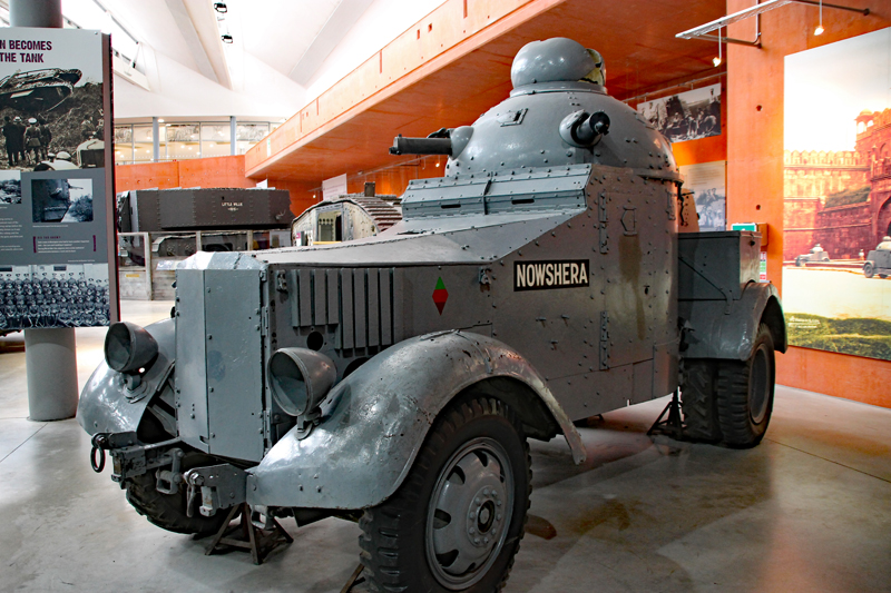 Die britischen „Armoured Cars“ wurden vor allem in den britischen Kolonien eingesetzt. Dieser nachfolgende „Crossley-Chevrolet“ ist ein Beispiel aus dem Ausstellungsbereich der sogenannten INTER WAR PERIOD.