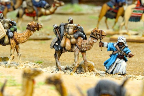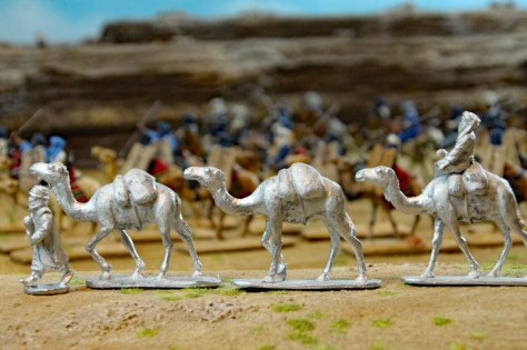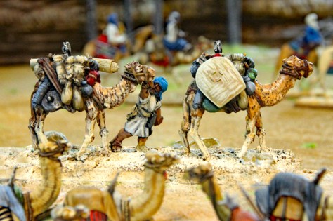 Bei den Kamelen der Kamelreiter fehlt leider, bis auf den Halsriemen, das Zaumzeug. Das Ganze Kamel wirkt dadurch etwas „nackt“. Die Satteldecken wehen außerdem zu dynamisch nach hinten und passen so nicht zum gemächlichen Gang der Tiere. Gut sind jedoch der Kreuzsattel und die Anatomie die Kamele wiedergegeben. Kleidung und Waffen sind historisch korrekt dargestellt.