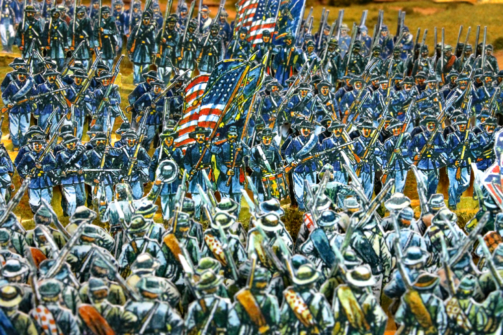 Mittlerweile gibt es neben meiner Konföderierten-Papier-Armee auch einige Einheiten der Union. Außerdem waren Vasa und Björn extrem fleißig und haben ebenfalls ihre Truppenstärke erhöht. So konnten wir schließlich eine erste große Schlacht mit den Papierfiguren von Peter und den Regeln von Andy schlagen. Gespielt wurde das zweite Szenario aus dem ACW Papierfigurenbuch, welches ziemlich genau … Gettysburg – Tag 1 weiterlesen