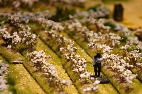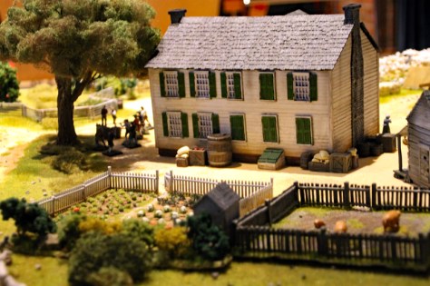 Auch bei dieser Spielplatte waren echte Meister des Geländebaus am Werk. Neben vielen sensationellen Details fielen dem flüchtigen Betrachter natürlich zuerst die Baumwollfelder und das pompöse „Farmhaus“ als Highlights ins Auge. Gespielt wurde übrigens nach dem Regelwerk Musket & Tomahawks. Das Szenario war natürlich im amerikanische Unabhängigkeitskrieg angesiedelt, wo 1780 der berüchtigte Partisanenführer Francis „Swamp Fox“ Marion den Engländern das Leben schwermachte. Um seinen Überfällen ein Ende zu setzen, beauftragten die Briten Banastre „Bloody Ban“ Tarleton mit seiner gefürchteten British Legion, um den „Sumpf-Fuchs“ zur Strecke zu bringen. Einen tosenden Applaus für Tabletop Sachsen und Tabletopclub Dresden e.V., die diese sensationelle Präsentation gestaltet haben.