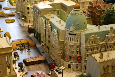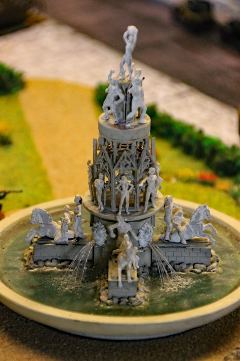 Schauplatz dieser Präsentation ist die Stadt Königsberg in den letzten Kriegstagen des 2. Weltkrieges. Mit dieser eindrucksvollen Spielplatte haben die Jungs von Pink Unicorn mal wieder gezeigt wo der Hammer hängt. Die Gebäude waren wirklich gigantisch gut und vor allem dieser unglaubliche Brunnen hat viele der Besucher begeistert. Ein nettes Gimmick waren auch die Königsberger-Klopse, die als „Give-Away“ in Dosen verteilt wurden. Wie schon auf der letzten Spielplatte der Jungs, war natürlich die Farbe „Rosa“ wieder sehr präsent. Und so durfte auch ein „Pink Panther“ nicht fehlen.