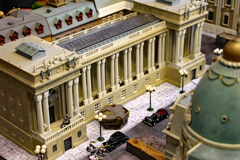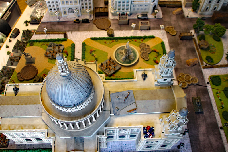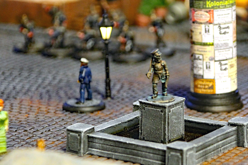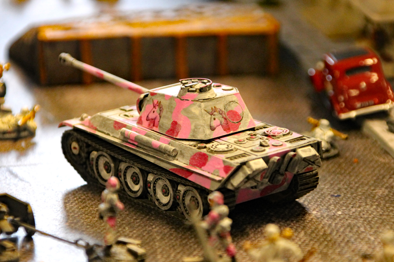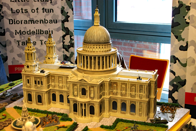 Schauplatz dieser Präsentation ist die Stadt Königsberg in den letzten Kriegstagen des 2. Weltkrieges. Mit dieser eindrucksvollen Spielplatte haben die Jungs von Pink Unicorn mal wieder gezeigt wo der Hammer hängt. Die Gebäude waren wirklich gigantisch gut und vor allem dieser unglaubliche Brunnen hat viele der Besucher begeistert. Ein nettes Gimmick waren auch die Königsberger-Klopse, die als „Give-Away“ in Dosen verteilt wurden. Wie schon auf der letzten Spielplatte der Jungs, war natürlich die Farbe „Rosa“ wieder sehr präsent. Und so durfte auch ein „Pink Panther“ nicht fehlen.