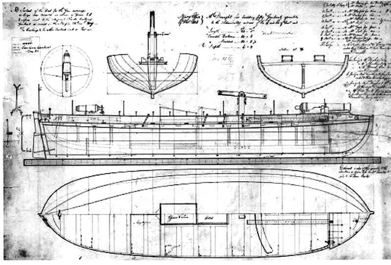 Neben den kleinen Einheiten der Segelkanonenboote, gab es auch bewaffnete geruderte Fahrzeuge in der Royal Navy. Sie waren einfachen Ruderbooten nicht unähnlich und hatten nur ein offenes Deck, mit einer winzigen Kabine für den kommandierenden Offizier. 1805 legte sich die Navy auf einen bestimmten Typ fest, den man nach seinem Erbauer benannte und welcher als „Hamilton-gunboat“ bekannt wurde. Diese Kanonenboote waren 16 m lang, trugen zwei lange 18-Pfünder (oder einen 24-Pfünder) am Bug und eine drehbare 18-Pfünder Karronade am Heck. Neben dem Ruderantrieb, konnten das Boot auch mit Hilfe eines einklappbaren Mastes sowie einem Lateinersegel gesegelt werden. Über 90 dieser nicht benannten, sondern nur nummerierten Boote, waren bei diversen Operationen an der Kanal- und Nordseeküste im Einsatz.