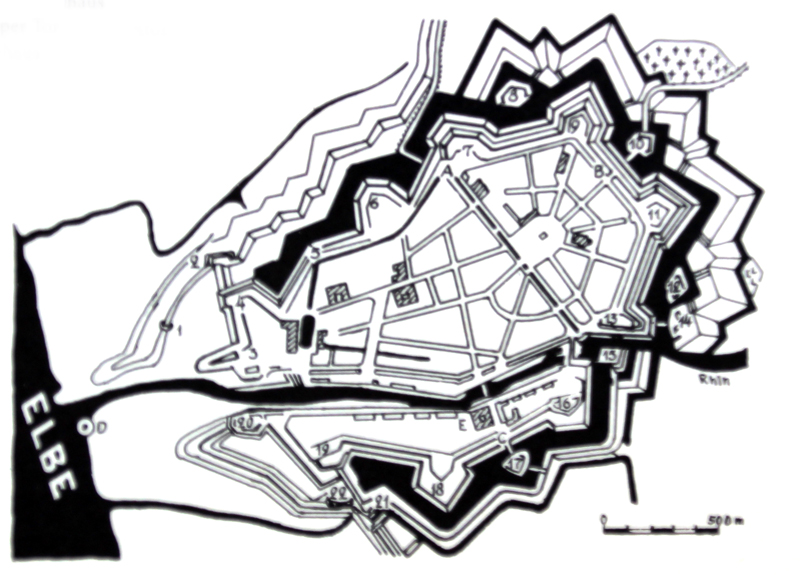 Zusätzliche Batterien hatte man dort in den Wall integriert, wo der Elbdeich an die Festung grenzte, da man fürchtete, dass Angreifer sich im Schutz des Deiches der Festung nähern könnten. Diesen Batterien war es außerdem möglich, feindliche Schiffe auf der Elbe zu bekämpfen. Die je 2 Batterien nördlich und südlich der Stadt hießen Louisen-Batterie und Prinz-Carl-Batterie sowie die Sieh-dich-vor-Batterie und die Prinz-Friedrich-Batterie.