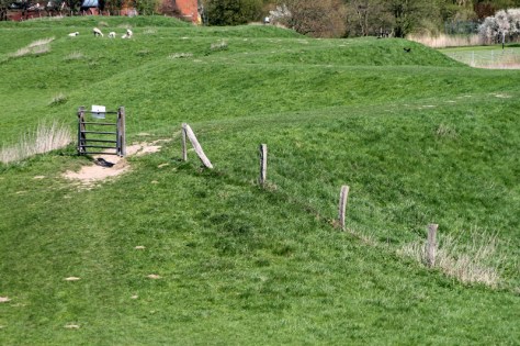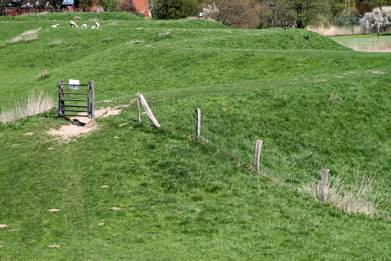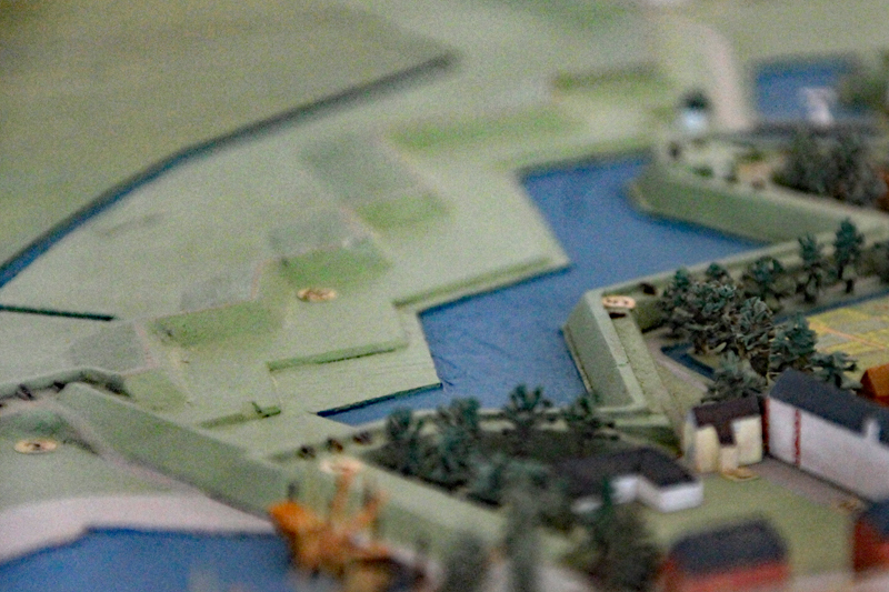 Die noch heute sichtbaren Festungswälle im Norden. Darunter dieselben Wälle im Modell von 1813.