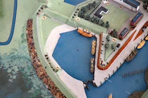 Im Hafen von Glückstadt (Heute und im Modell von 1813).